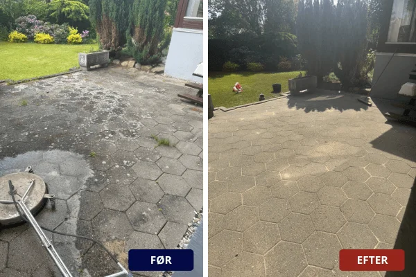 Derfor anvender vi f.eks. hedvandsrenser modsat de traditionelle højtryksspulere. Det er langt mere skånsomt mod fliserne.