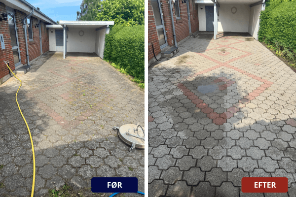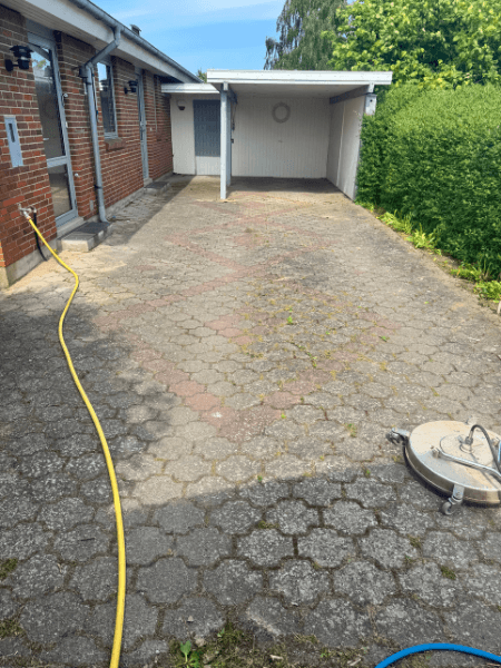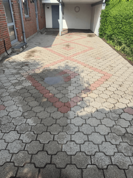 Projektet var et perfekt eksempel på, hvordan professionel fliserens kan transformere et udeareal. Kunderne ville gerne have mønstret i deres herregårdssten til at træde tydeligt frem igen, og netop det opnåede vi med vores Den normale pakke.