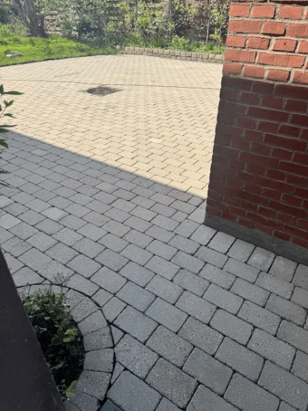 Vores specialbyggede udstyr sikrer ensartet behandling over hele arealet, mens det bevarer herregårdsstenens naturlige struktur og farver. Efter den omfattende rensningsproces påførte vi en professionel algebehandling, der forhindrer fremtidig algeopbygning, og afsluttede med nanoimprægnering for langvarig beskyttelse.