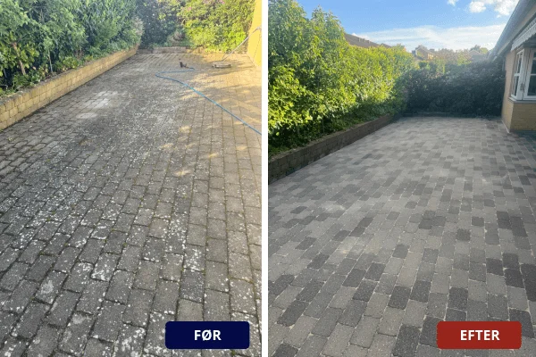 I maj 2025 fornyede vi 80 m² herregårdssten på en rækkehus-ejendom på Mariehøj Alle i Hørsholm. Med Den ‘Luksuriøse’ pakke leverede vi en komplet premium-løsning til 7.600 kr., hvilket svarer til 75 kr. per m². Projektet omfattede også fugesand inklusive levering og pålægning for den perfekte afslutning.