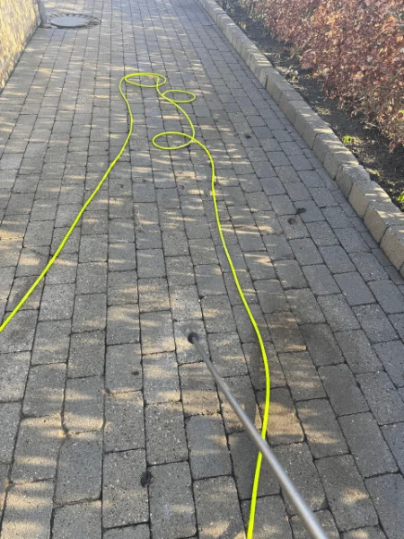 Efter rensningsprocessen påførte vi en professionel algebehandling, der forhindrer fremtidig algeopbygning, og afsluttede med nanoimprægnering for maksimal beskyttelse. Den færdige overflade er ikke kun visuelt imponerende, men også fremtidssikret mod vejrpåvirkninger og hverdagssnavs.