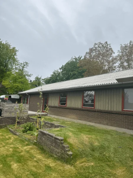 I marts 2025 udførte Stecks Tagrens et omfattende tagrens- og tagmalingsprojekt på en villa på Bakkevej i Jyllinge. Projektet omfattede specialiseret rensning af asbesttag på 202 kvadratmeter tagfladeareal med en hældning på 30 grader. Projektet inkluderede både maling og ny tagrygning.