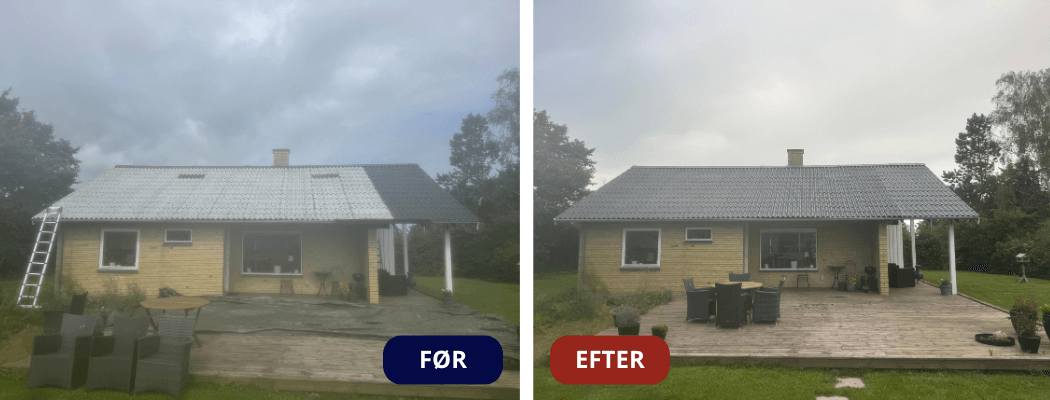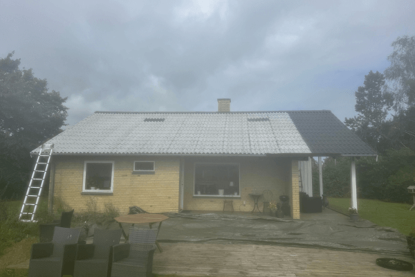 I april 2025 udførte Stecks Tagrens et tagrens- og tagmalingsprojekt på et parcelhus på Dagsværmervej i Frederiksværk. Projektet omfattede specialiseret rensning af asbesttag på 101 kvadratmeter tagfladeareal med en hældning på 30 grader.