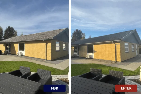I februar 2025 udførte Stecks Tagrens et omfattende tagrens- og tagmalingsprojekt på et parcelhus på Lindegårdsparken i Kirke Eskilstrup. Projektet omfattede specialiseret rensning af asbesttag på 171 kvadratmeter tagfladeareal med en hældning på 30 grader.