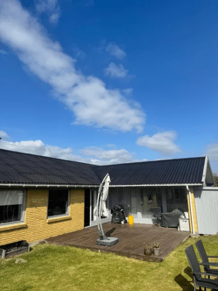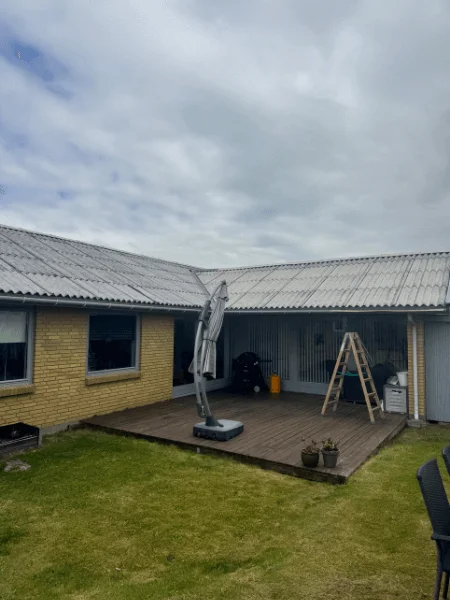 I april 2025 gennemførte Stecks Tagrens et omfattende tagrens- og tagmalingsprojekt på et parcelhus på Nydamvej i Ølstykke. Projektet omfattede specialiseret rensning af asbesttag på 189 kvadratmeter tagfladeareal med en hældning på 30 grader.