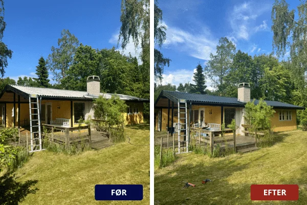 I november 2024 gennemførte Stecks Tagrens et omfattende tagrens- og tagmalingsprojekt på et sommerhus på Solsortevej i Rørvig. Projektet omfattede specialiseret rensning af asbesttag på 114 kvadratmeter tagfladeareal med en hældning på 30 grader. Sommerhuset fik også udført ny tagrygning som en del af projektet.