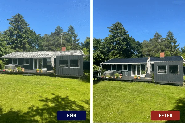 I marts 2025 gennemførte Stecks Tagrens et tagrens- og tagmalingsprojekt på et sommerhus på Søvang i Nykøbing Sj. Projektet omfattede specialiseret rensning af asbesttag på 92 kvadratmeter tagfladeareal med en hældning på 30 grader.