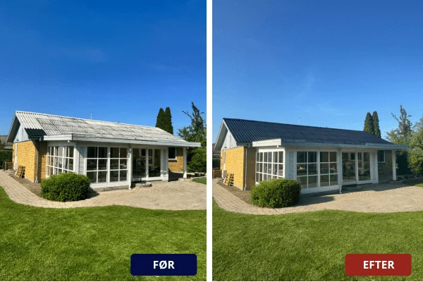 I februar 2025 udførte Stecks Tagrens et omfattende tagrens- og tagmalingsprojekt på et parcelhus på Tranekær i Gislinge. Projektet omfattede specialiseret rensning af asbesttag på 136 kvadratmeter tagfladeareal med en hældning på 30 grader.