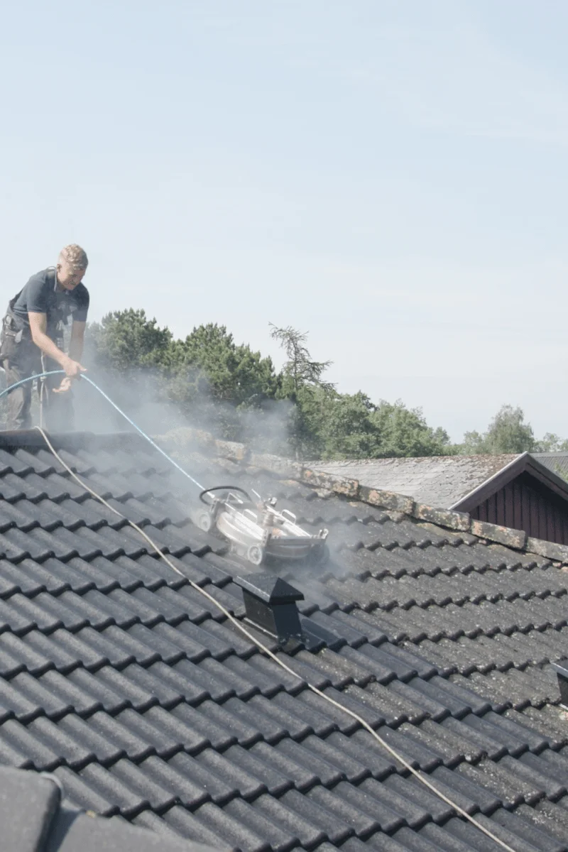 Vi håndterer hele projektet: Nedtagning af de gamle betontagsten, bortskaffelse og montering af dit nye tag.